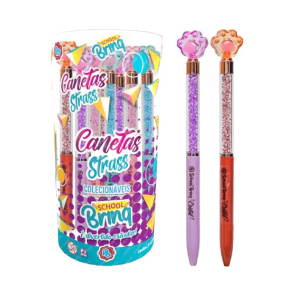 CANETA PATINHAS STRASS SCHOOL BRIN 1X20U